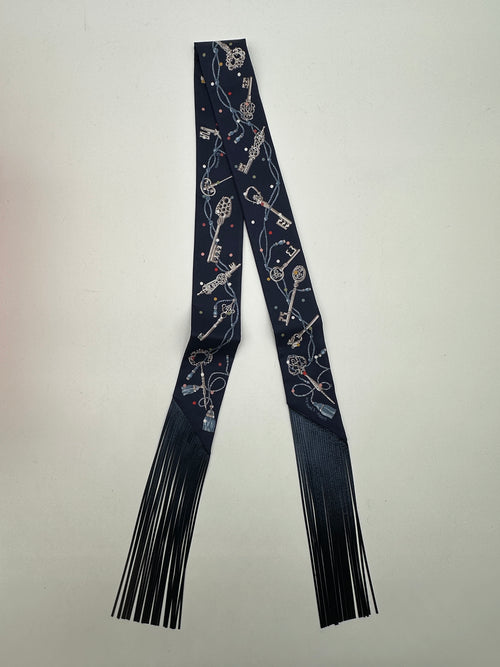 Hermès Jumping Leather Fringes Twilly /Alezan/Anthracite Creme -